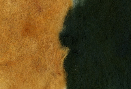 去年の暮れにバタバタと準備しておいたタマネギの皮(Al媒染)染めと洗ったナチュラル茶色の原毛に藍をかけてみた。