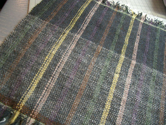 実際に織ってみると薄いピンクと辛子色が浮いてしまいました。
