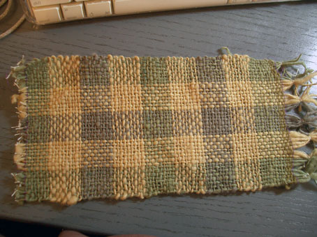 チェックブランケットのサンプル December 22, 2006 年内少し余裕ができたので、来年の作業を始めました。 新しい年はブランケットの製作からスタートです。 先日ばたばたと染めていたサフォークを使って、3色の大きなチェックのブランケットの予定。 そのサンプルを作りました。(あわてて織ったので耳があまりきれいじゃありません) 実際は、約10センチ正方のチェックにする予定です。 ちょっとほんわかとした雰囲気になりました。 「ブランケット」カテゴリの最新記事 < 前の記事次の記事 > トラックバック