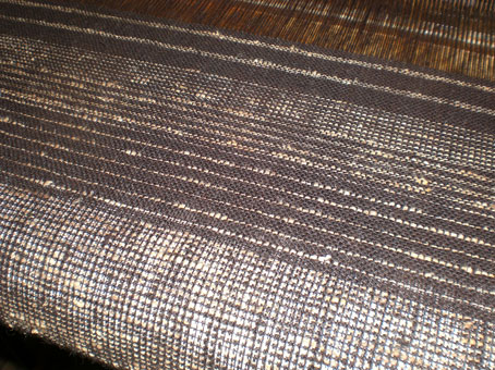 帽子布<タッサー> February 12, 2008 経糸はナチュラルの焦茶で、緯糸を変えて何種類か織っていきます。 その最初の布。 ぼこぼことしたタッサーシルクの糸を使って、経糸と同じ糸との組み合わせでランダムにテキトーに緯縞にします。 ただひとつ気になるのがこの緯縞が帽子になった時にも横方向になるのかどうかということ。 場合によってはこの縞、縦方向になるのかもしれない。 このテキトーな感じがどのように反映されるのか、ちょっと楽しみだったりします。 「帽子」カテゴリの最新記事 < 前の記事次の記事 > トラックバック