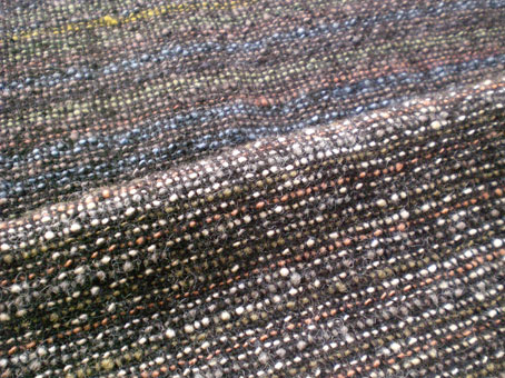 この2枚は、色糸がやや太めで少し多めに撚りがかかっていたため縮絨をしてみたらぼこぼことおもしろいテクスチャーになったのでここで縮絨をストップ。