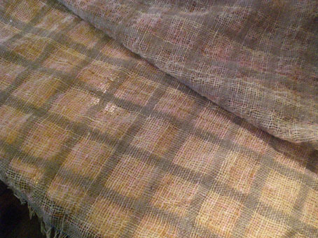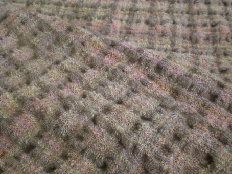 強撚×普通撚の帽子布 August 03, 2008 2枚目の強撚の布が出来上がりました。 かなりしつこくサンプルを作った甲斐があり、頭の中にあったテクスチャーに近いものができました。 でも本当はもうちょっと。それはまた違う作品に持ち越すことにしました。 ちなみに、縮絨前の状態はこんな感じ。 全く違うものですね。 「帽子」カテゴリの最新記事 < 前の記事次の記事 > トラックバック