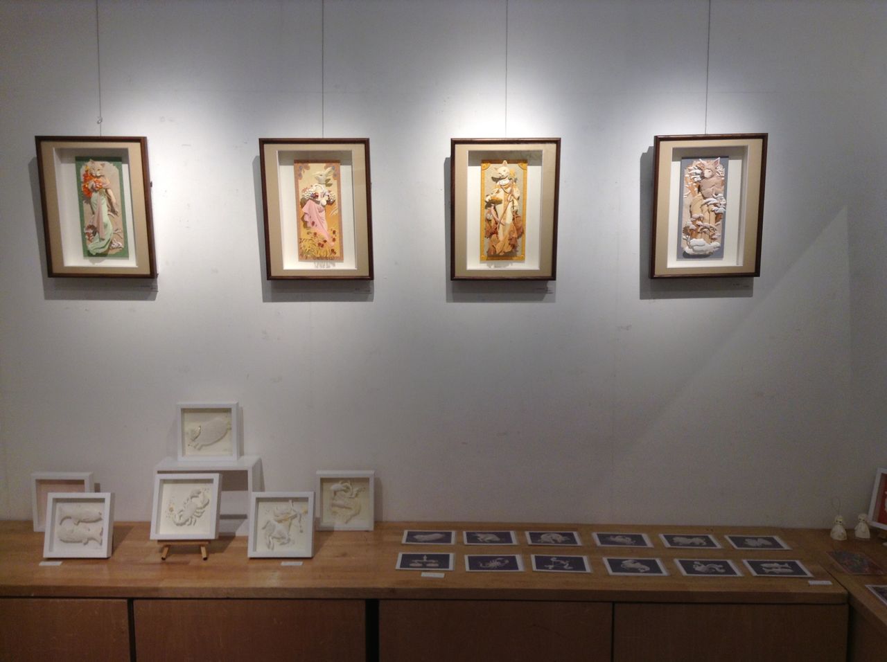 ミュシャの絵をモチーフに今回の作品展のために制作した連作4点。