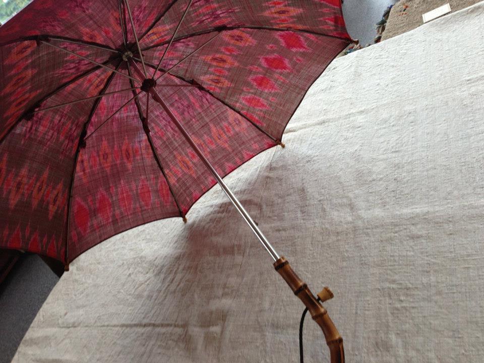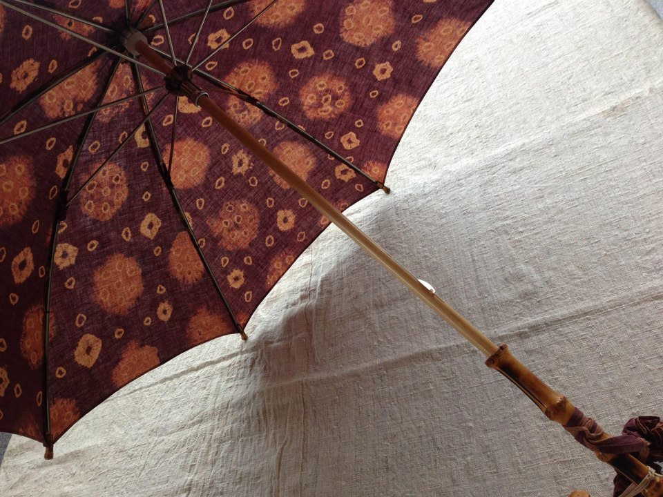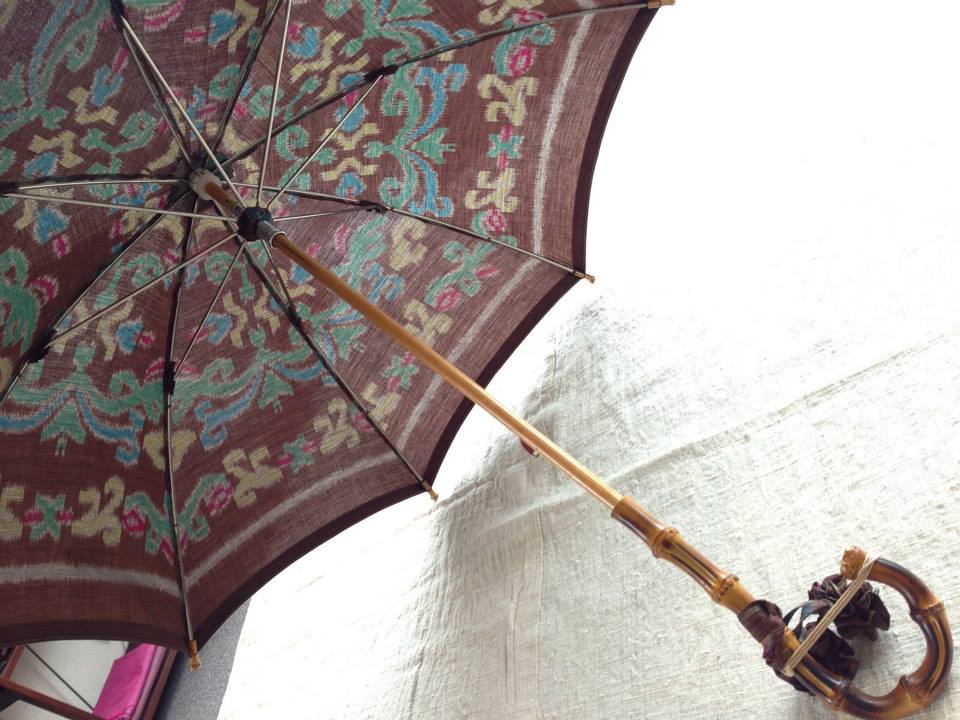今週金曜日からスタートする恒例ギャラリー五峯さんでの展示のために、日傘工房パラソラさんにスマトラ島の布で日傘をお願いしました。