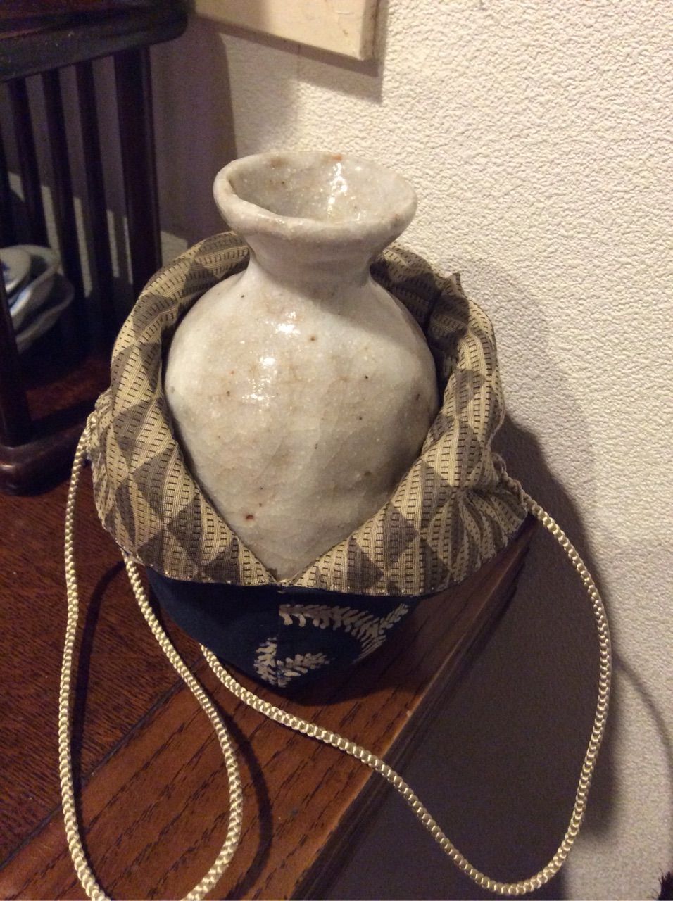 去年から手がけていた志野焼徳利の仕覆を完成させました。
