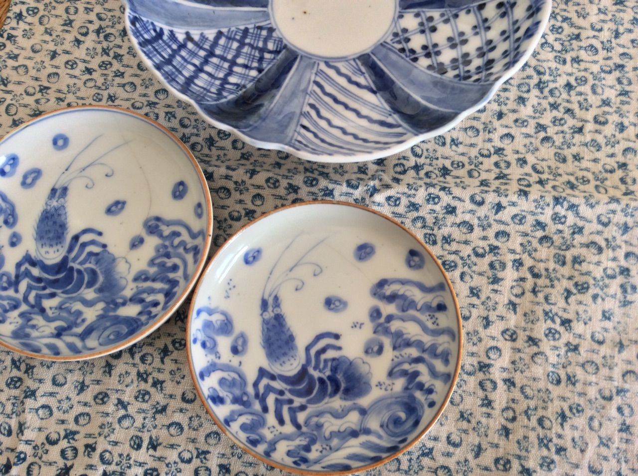 金繕いに良さそうな少々キズがあるエビの小皿を買い、
