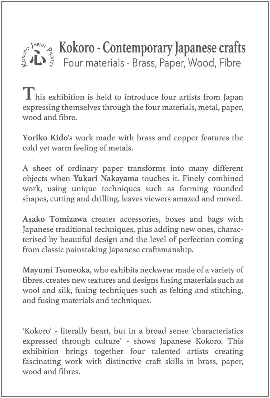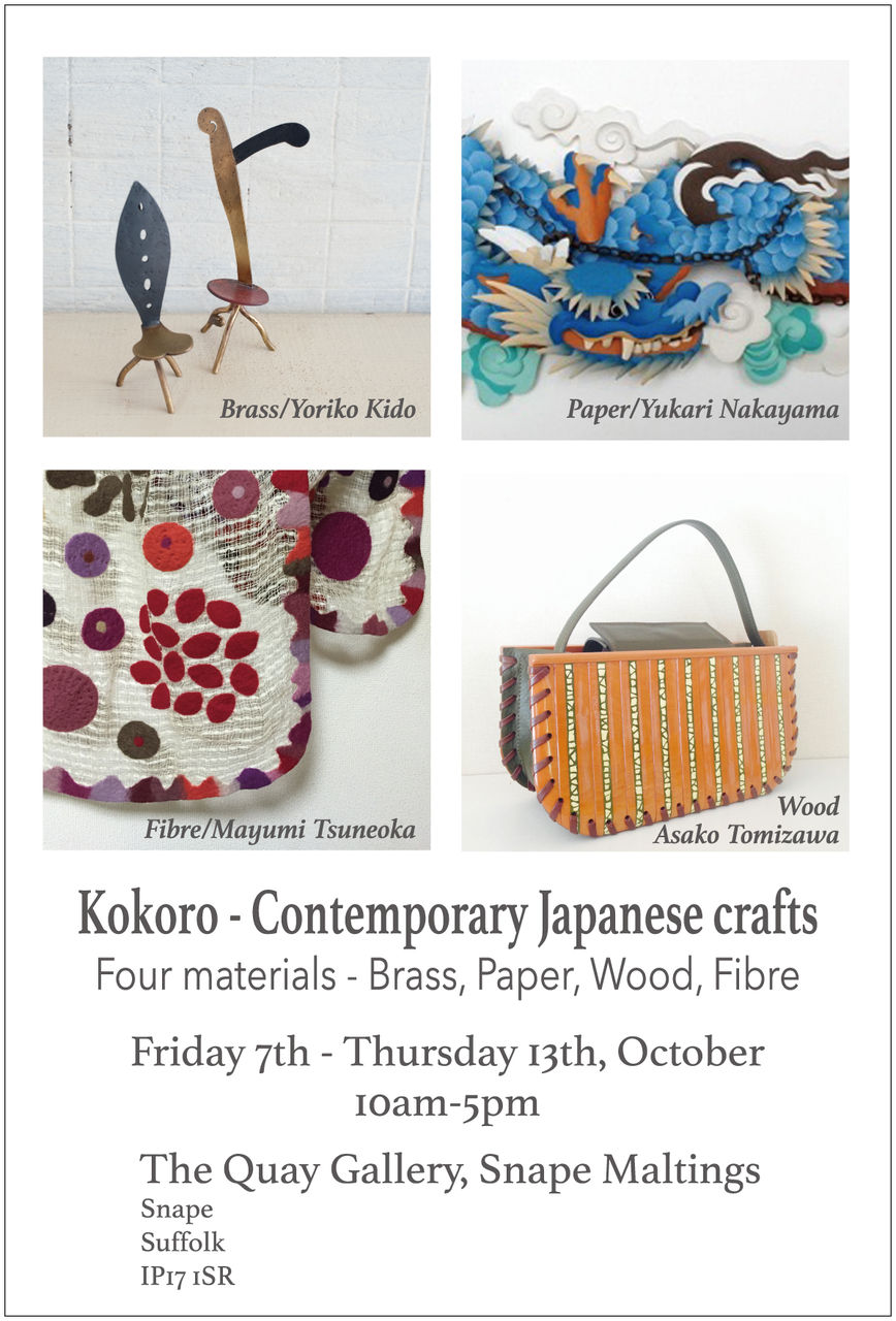イギリスでの作品展 Kokoro-Contemporary Japanese crafts September 20, 2016 今年も下のお知らせの通り、イギリス・サフォーク州にあるスネイプモルティングス内のThe Quay Galleryにて、作品展をいたします。今年は、金属・木・紙・ファイバーの4つの素材をテーマに、それぞれの作家さんとのグループ展です。今回現地に赴くのは、私を含め3人といつもお世話になっているギャラリーのオーナーの方と、合わせて4人。楽しい展示会&旅行になりそうで、今から楽しみです。 「イギリス」カテゴリの最新記事 < 前の記事次の記事 >